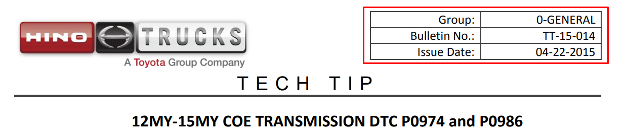 The transmission DTC’s P0974 and P0986, may be found on 12MY-15MY COE models. There could also be a