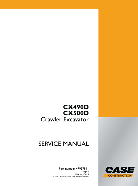 Service Repair Manual for Case CX490D Crawler Excavator, with illustrations and comprehensive repair instructions