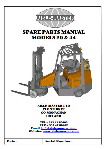 Aisle Master Forklift 20 & 44 Spare Parts Manual