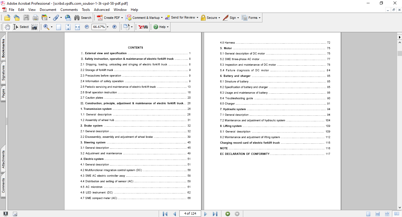 Construction, principle, adjustment & maintenance of electric forklift truck… 26