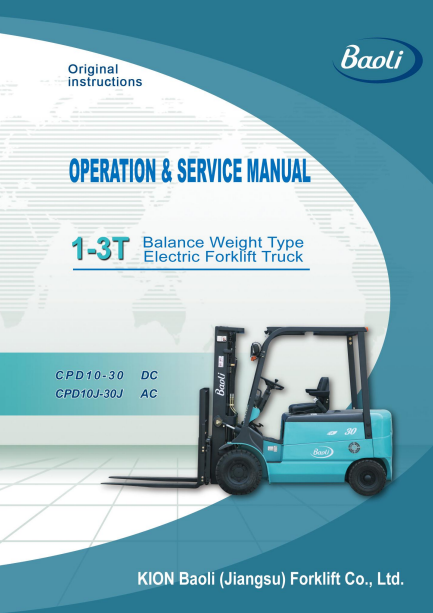 Baoli 1-3T Electric Forklift Operation & Service Manual