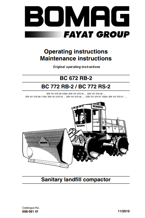 Bomag BC 672 RB-2, BC 772 RB-2, BC 772 RS-2 Sanitary landfill compactor Operators Manual