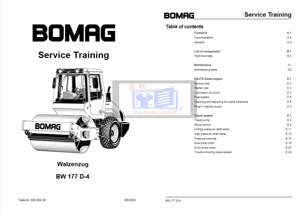 The Bomag BW177D-4 Service Training Manual is a comprehensive guide designed to support technicians and service personnel in the maintenance, troubleshooting, and repair of the Bomag BW177D-4 single drum roller. This official manual provides in-depth training material that covers mechanical, hydraulic, and electrical systems, ensuring efficient and effective servicing of the machine.