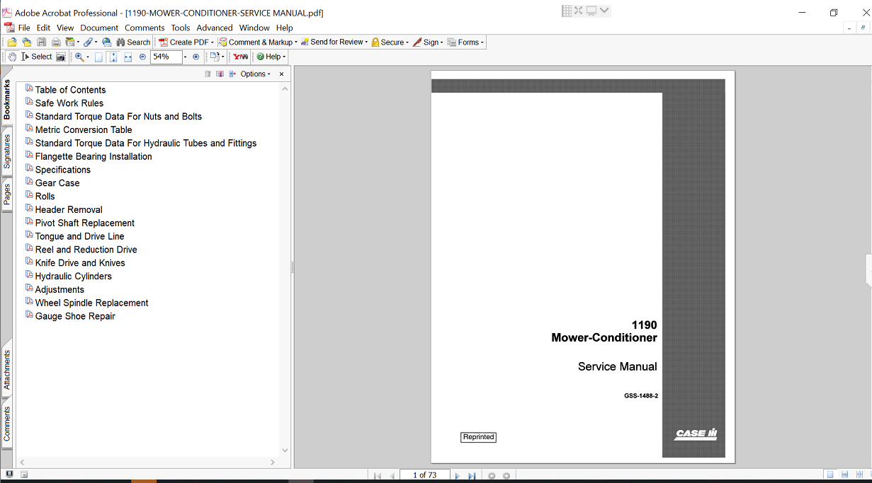 | Included Items | Official and Complete Service Repair Manual for Case 1190 Mower Conditioner |