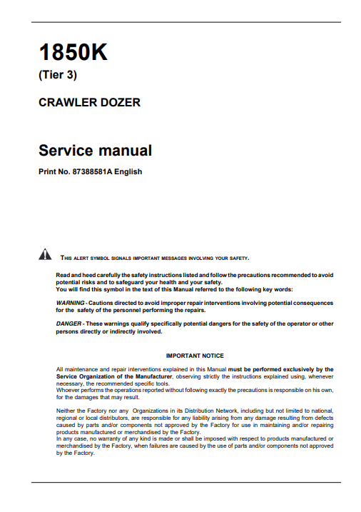 Service repair manual for Case 1850K Crawler Dozer, detailing maintenance and troubleshooting proceduresCase 1850K Crawler Dozer Service Repair Manual