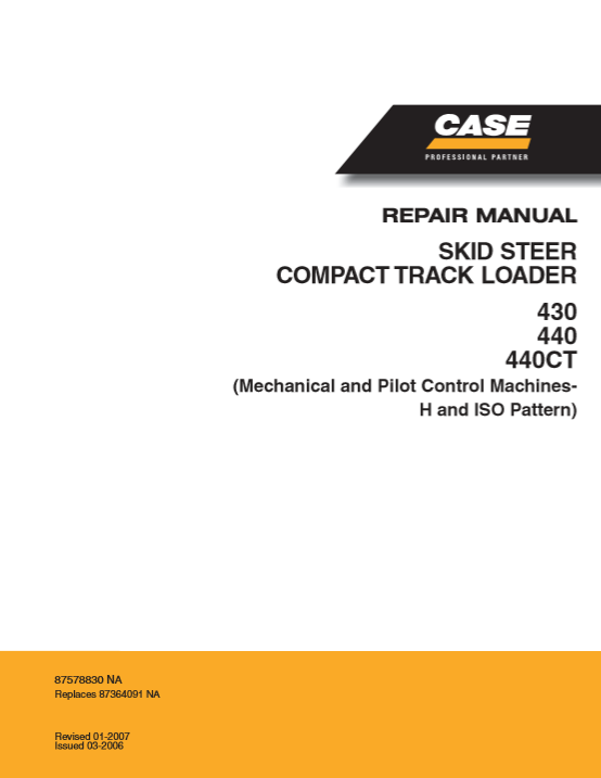 Comprehensive service manual for Case 430, 440, and 440CT skid steers, covering repair and maintenance guidelinesCase 430, Case 440, Case 440CT Skid Steers Service Repair Manual