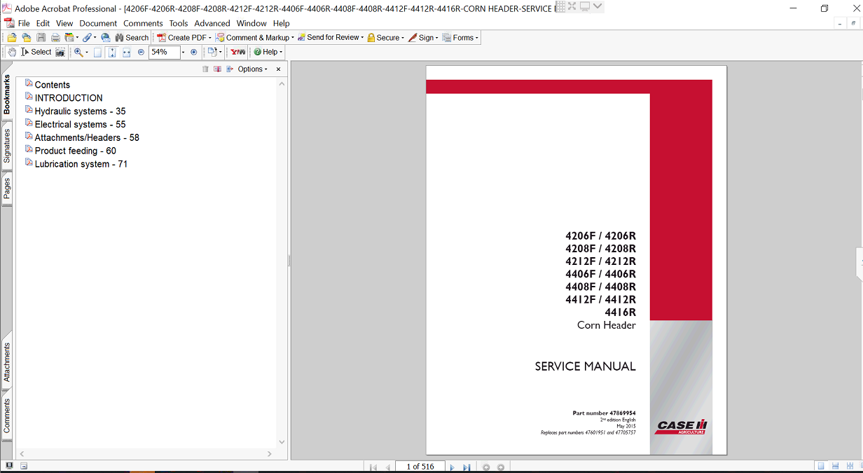 | Included Items | Official Service Repair Manual for Case 4408R Corn Header |