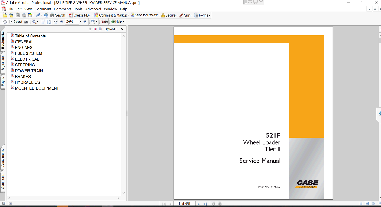 The Case 521F Wheel Loader Service Repair Manual offers thorough, in-depth guidance on how to maintain, troubleshoot, and repair this adaptable piece of heavy machinery. To help technicians and operators maintain peak performance and guarantee safe operation, it contains technical specifications, detailed instructions, wiring diagrams, and safety rules. This manual is a crucial tool for guaranteeing the durability and dependability of the Case 521F Wheel Loader, whether doing simple maintenance or more involved repairs.