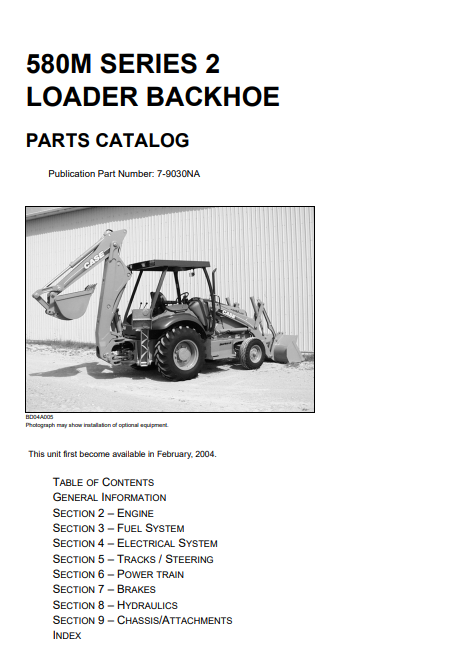 Parts manual for Case 580M Series 2 Backhoe Loader, detailing components and assembly instructionCase 580M Series 2 Backhoe Loader Parts Manual