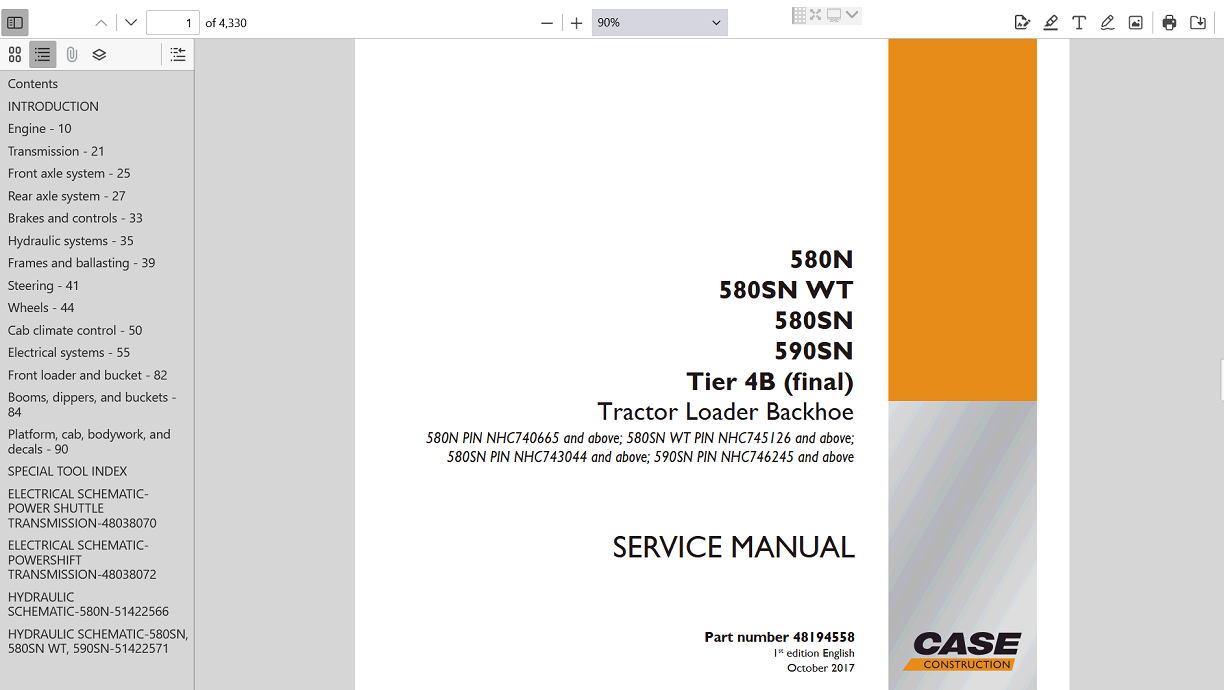 | Included Items | Official Complete Service Repair Manual for Case 580SN WT Backhoe Loader |