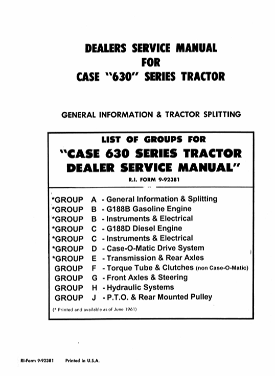 The Service Repair Manual for the Case 630 Tractor is an essential resource for any owner or mechanic looking to maintain and repair this classic machine. This comprehensive guide provides detailed instructions, diagrams, and troubleshooting tips to ensure your tractor operates at peak performance. With clear, step-by-step procedures, you can confidently tackle repairs and maintenance tasks, saving time and money while extending the life of your equipment