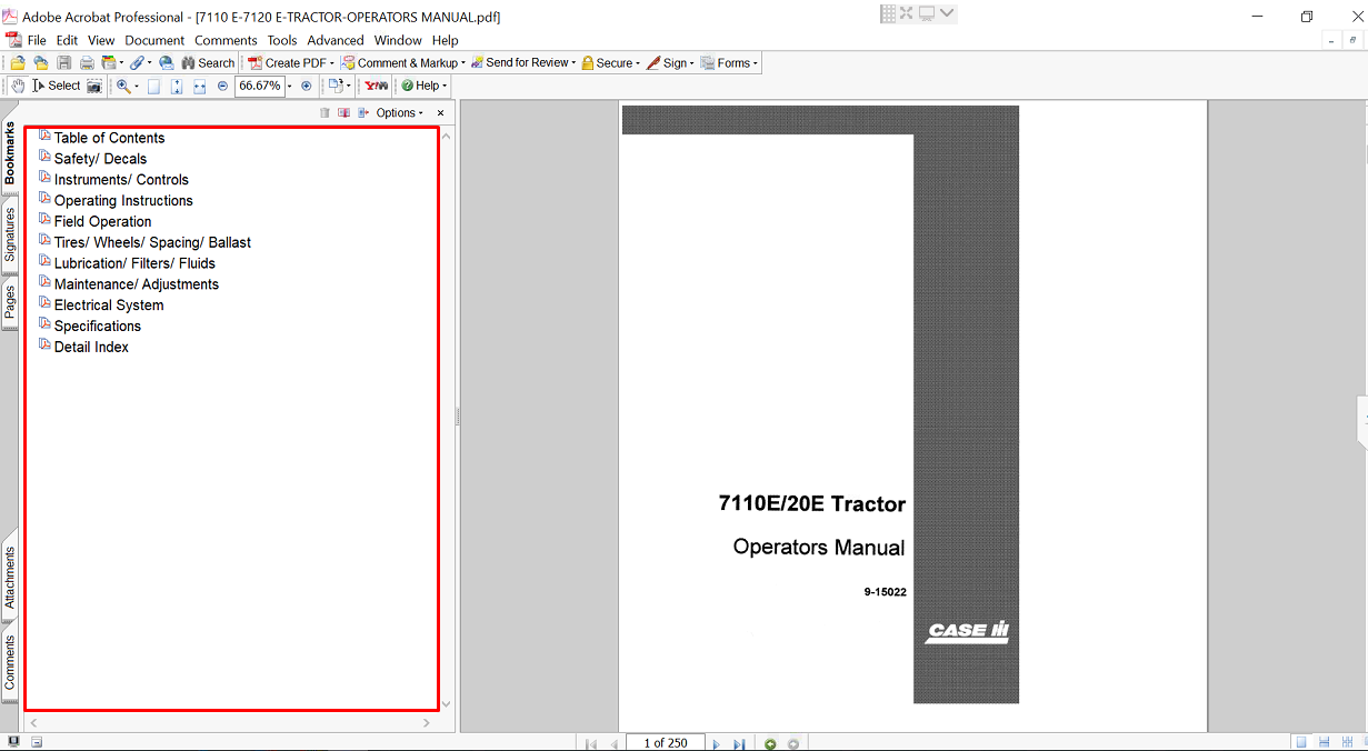 | Included Items | Operator’s Manual for Case 7110E Tractor |