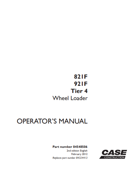 Case 821F, 921F Tier 4 Wheel Loader Operators Manual