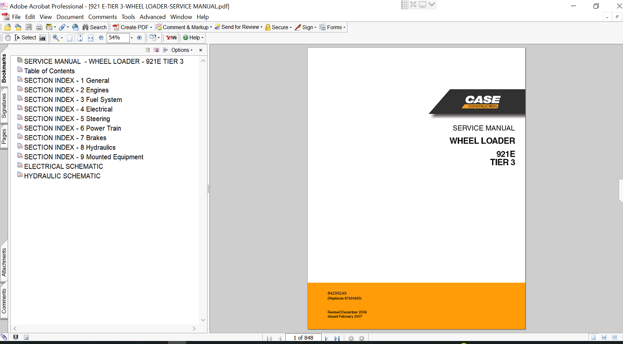 Ensure top performance and long-lasting durability of your Case 921E Wheel Loader with this comprehensive Service Repair Manual. Designed specifically for professional technicians, mechanics, and equipment owners, this manual provides detailed instructions, diagrams, and specifications to perform maintenance, service, diagnostics, and repairs with confidence