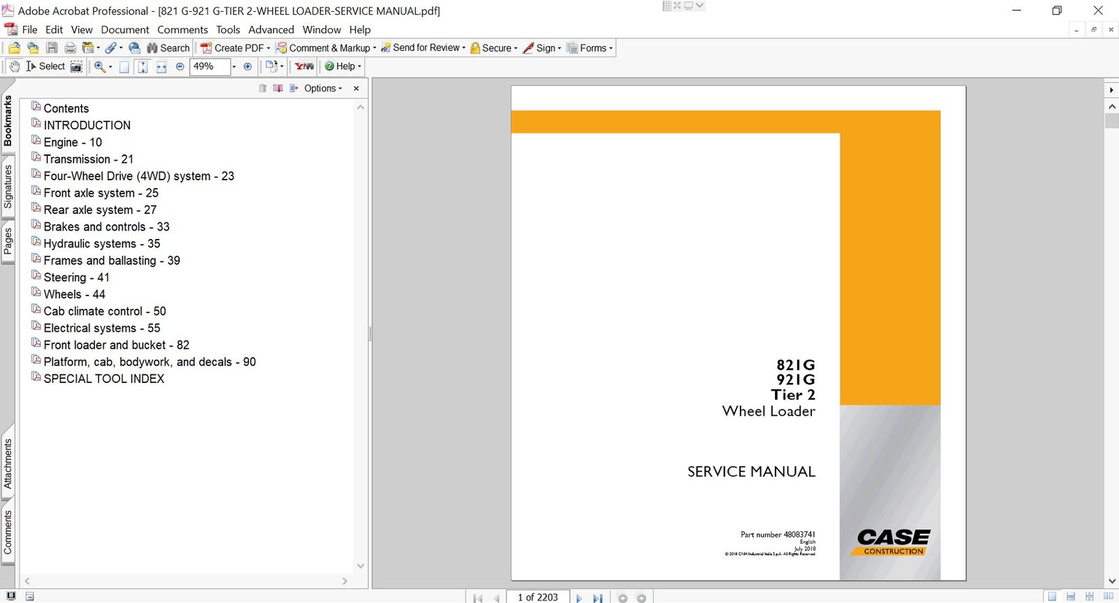 Take full control of your maintenance and repairs with this Complete Service Repair Manual for Case 921G Wheel Loader. Whether you’re a professional technician or a hands-on owner, this official OEM manual gives you everything you need to diagnose, service, and repair your equipment — exactly like the dealership would