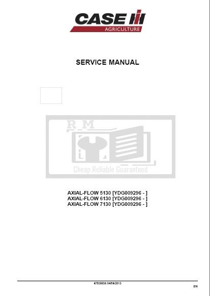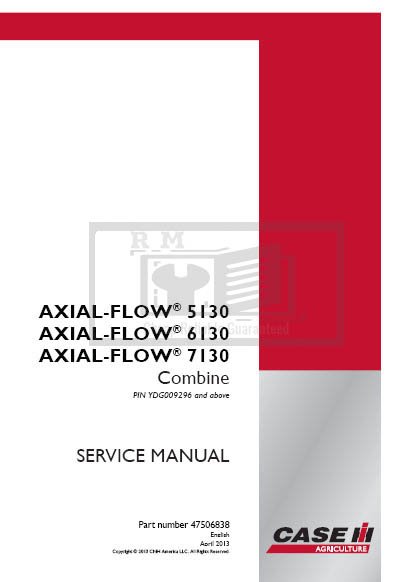 Comprehensive service repair manual for Case Axial-Flow 5130, 6130, and 7130 combines, covering repair and maintenance topicsCase  Axial-Flow 5130, Axial-Flow 6130, Axial-Flow 7130 Combine Service Repair Manual