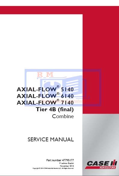 This is the complete official service repair manual in digital (PDF) format for the Case IH Axial‑Flow 5140, 6140 and 7140 combine harvesters. It contains step‑by‑step instructions, full component overhauls, wiring and hydraulic schematics, assembly/disassembly procedures and specifications — everything a workshop or professional technician needs.