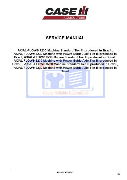 Comprehensive service repair manual for Case Axial Flow models 7230, 8230, and 9230, detailing maintenance proceduresCase Axial Flow 7230, Axial Flow 8230, Axial Flow 9230 Service Repair Manual