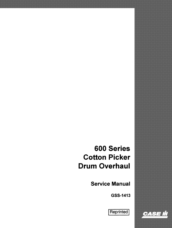Case 600 Series Cotton Picker (Drum Overhaul) Service Repair Manual
