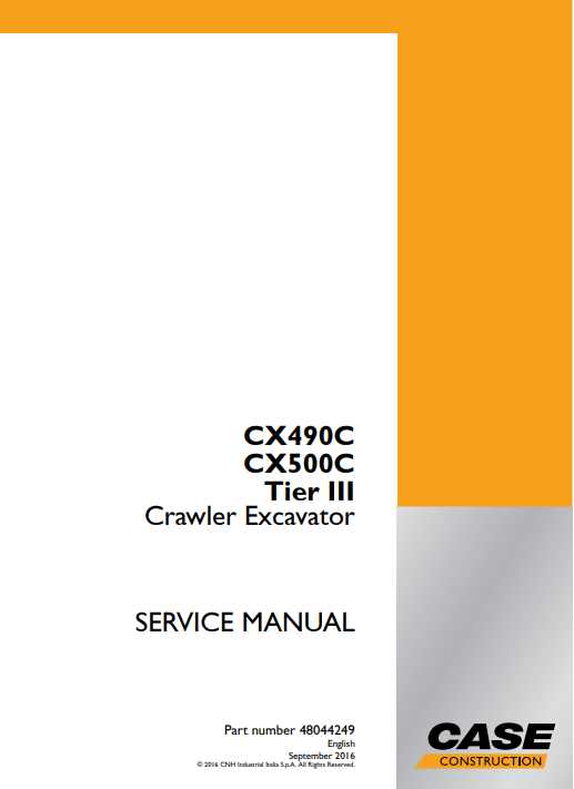 Case CX490C, CX500C Tier III Crawler Excavator Service Repair Manual