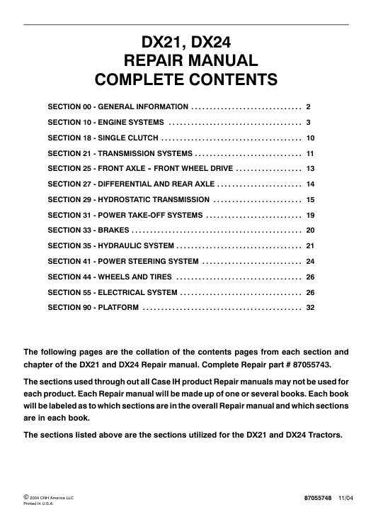 | Included Items | Official and Complete Service Repair Manual for Case IH DX24 Tractor |