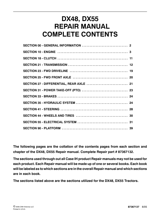 | Included Items | Official Service Repair Manual for Case IH DX48 Tractor |