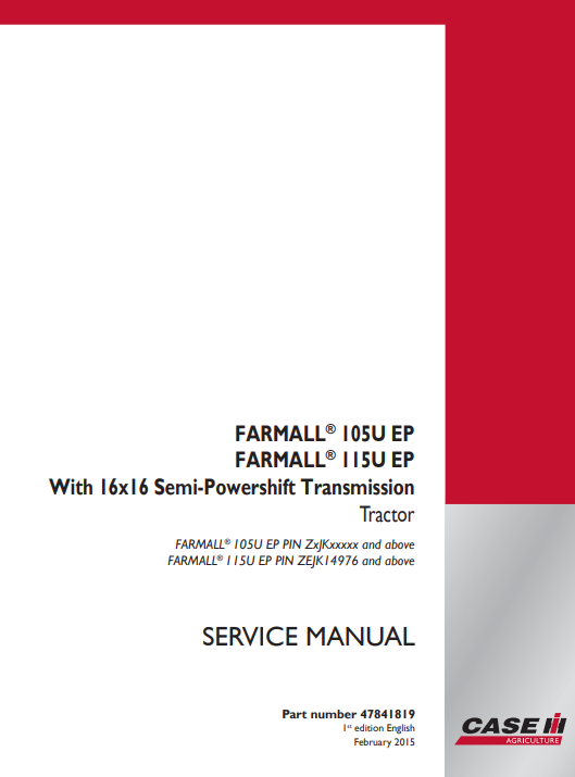 Case Farmall 105U-EP, Farmall 115U-EP With 16×16 Semi-Powershift Transmission Tractor Service Repair Manual