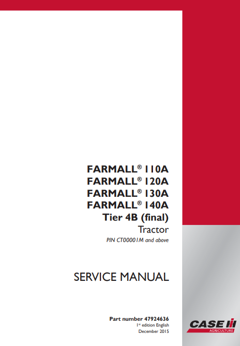 Case Farmall 110A, Farmall 120A, Farmall 130A, Farmall 140A Tier 4B Tractor Service Repair Manual