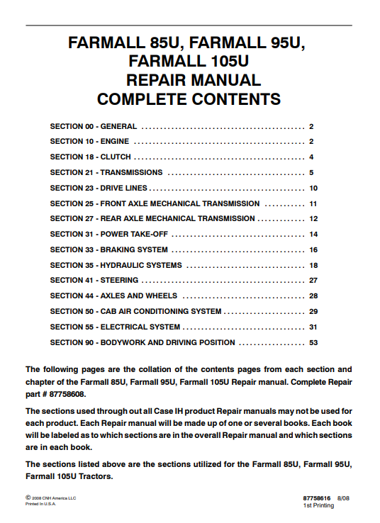 The Case Farmall 85U, 95U, and 105U Service Repair Manual is an essential resource for any owner or technician looking to maintain and repair these powerful tractors. This comprehensive manual provides detailed instructions on everything from routine maintenance to complex repairs, ensuring that you can keep your equipment running smoothly and efficiently. With clear diagrams, step-by-step procedures, and troubleshooting tips, this manual empowers you to tackle any issue with confidence. Whether you’re a seasoned mechanic or a DIY enthusiast, the Case Farmall Service Repair Manual is designed to save you time and money by helping you perform repairs correctly the first time. Invest in this invaluable guide to ensure the longevity and performance of your Case Farmall tractor
