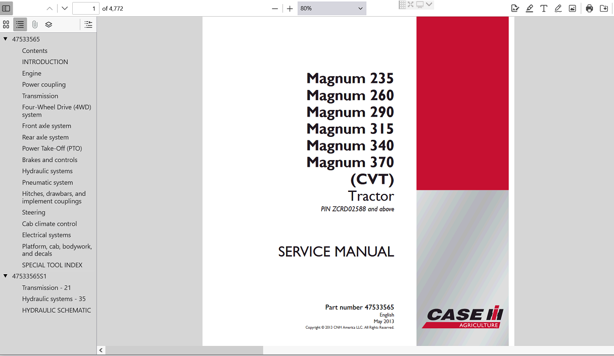 | Included Items | Complete Service Repair Manual for Case IH Magnum 340 Tractor |