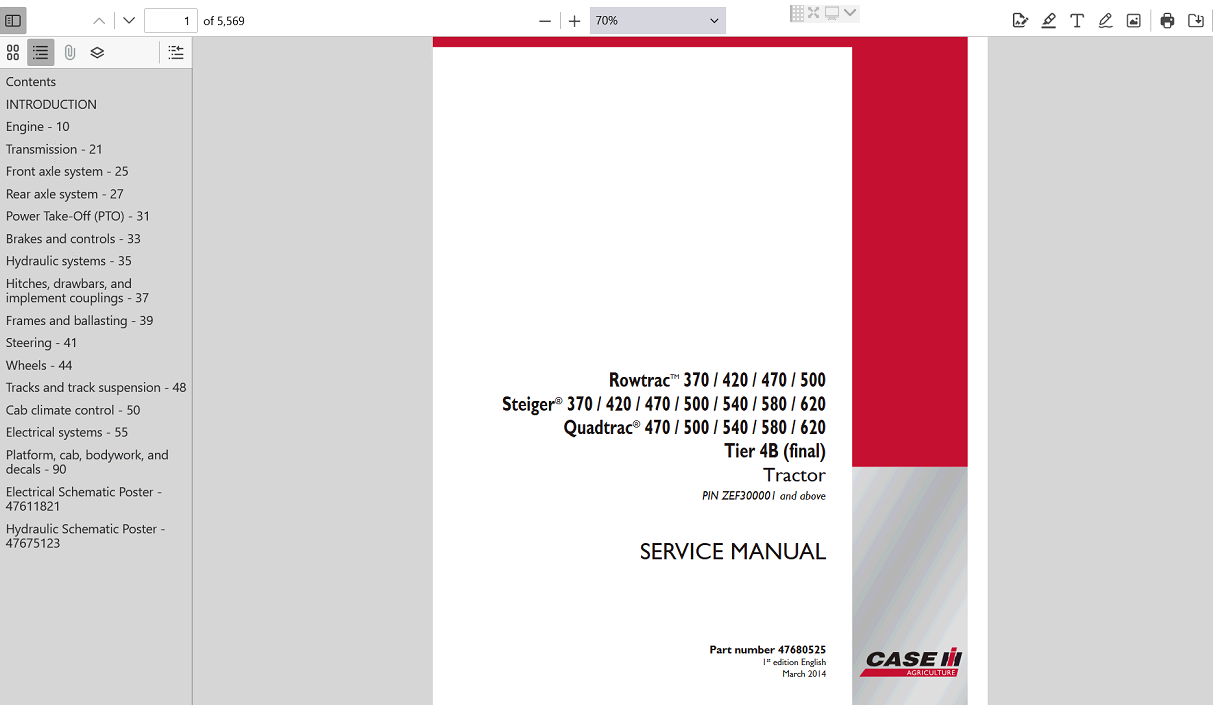 | Included Items | Complete Service Repair Manual for Case IH 420 Steiger Tractor |