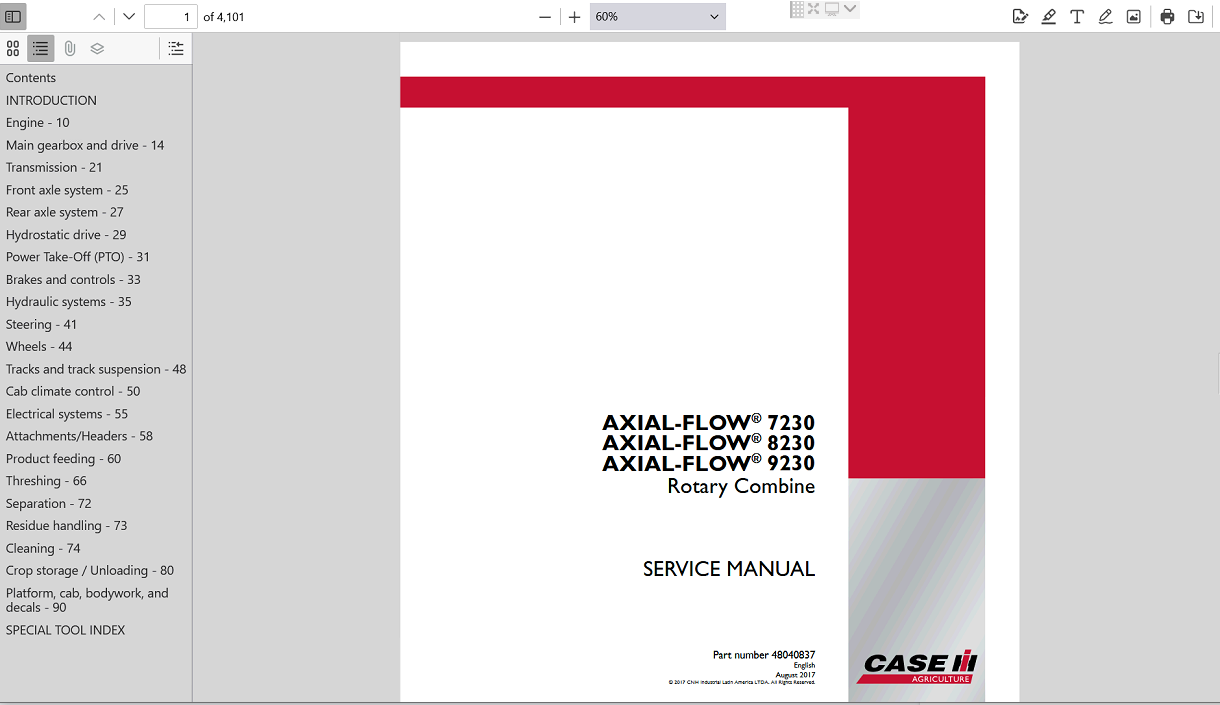 Case IH 8230 Axial Flow service repair manual, showcasing essential maintenance guidelines and troubleshooting tipsCase IH 7230 Axial Flow Service Repair Manual