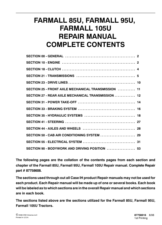 | Included Items | Complete Service Repair Manual for Case IH Farmall 85U Tractor |