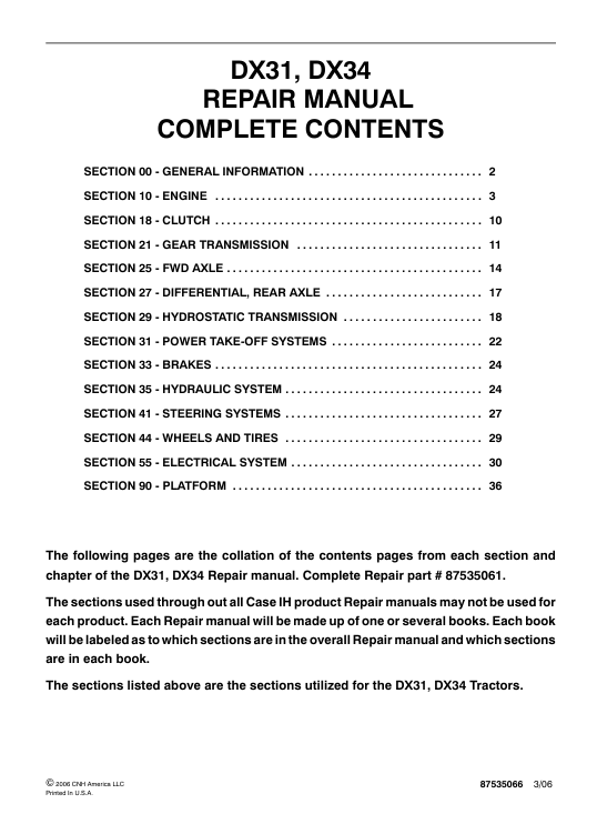 | Included Items | Official and Complete Service Repair Manual for Case IH DX31 Tractor |