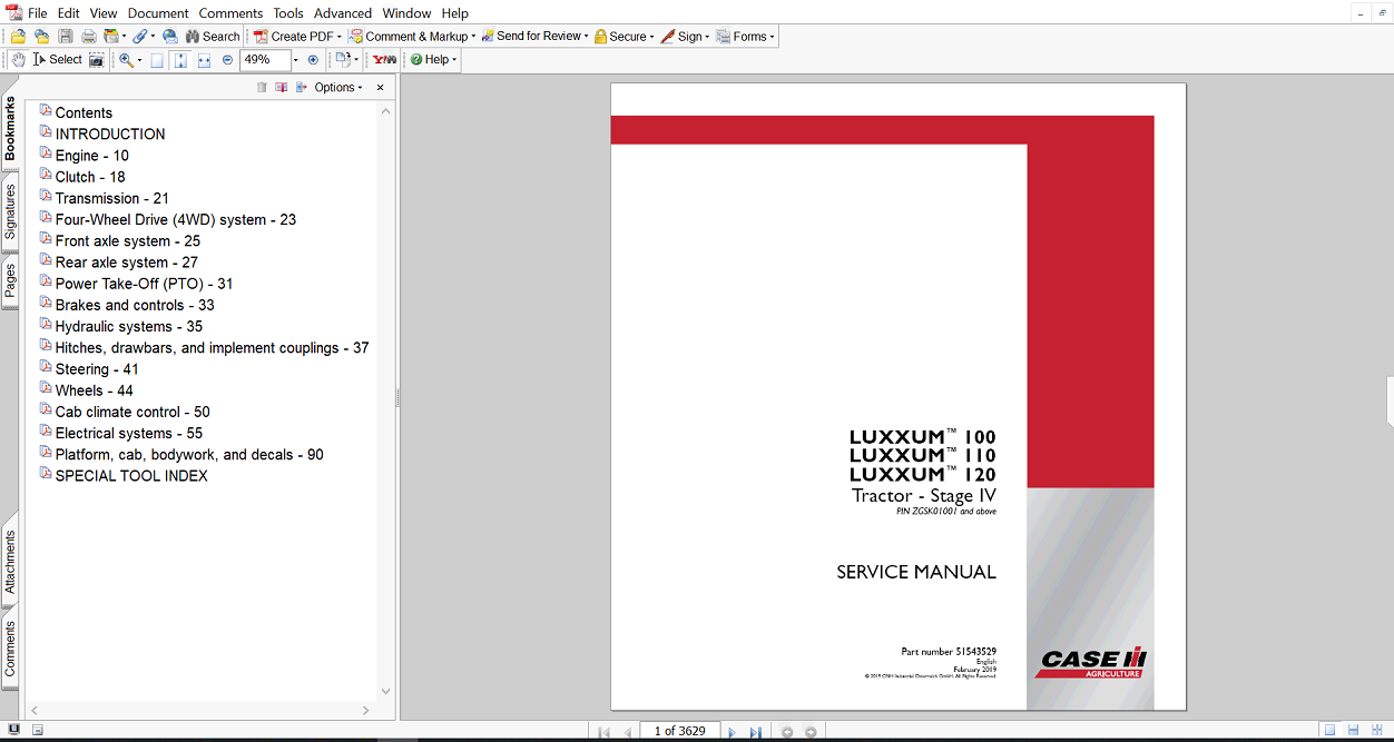 Included Items Complete Service Repair Manual for Case IH Luxxum 110 Tractor