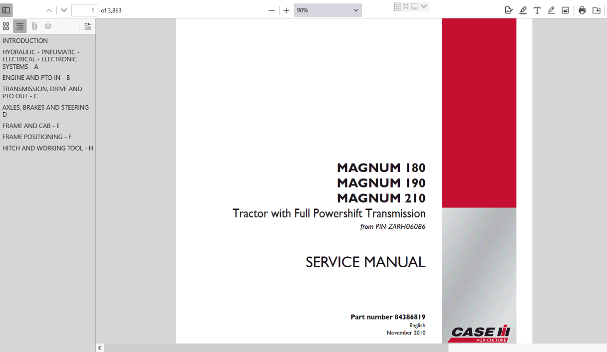 | Included Items | Complete Service Repair Manual for Case IH Magnum 190 Tractor |