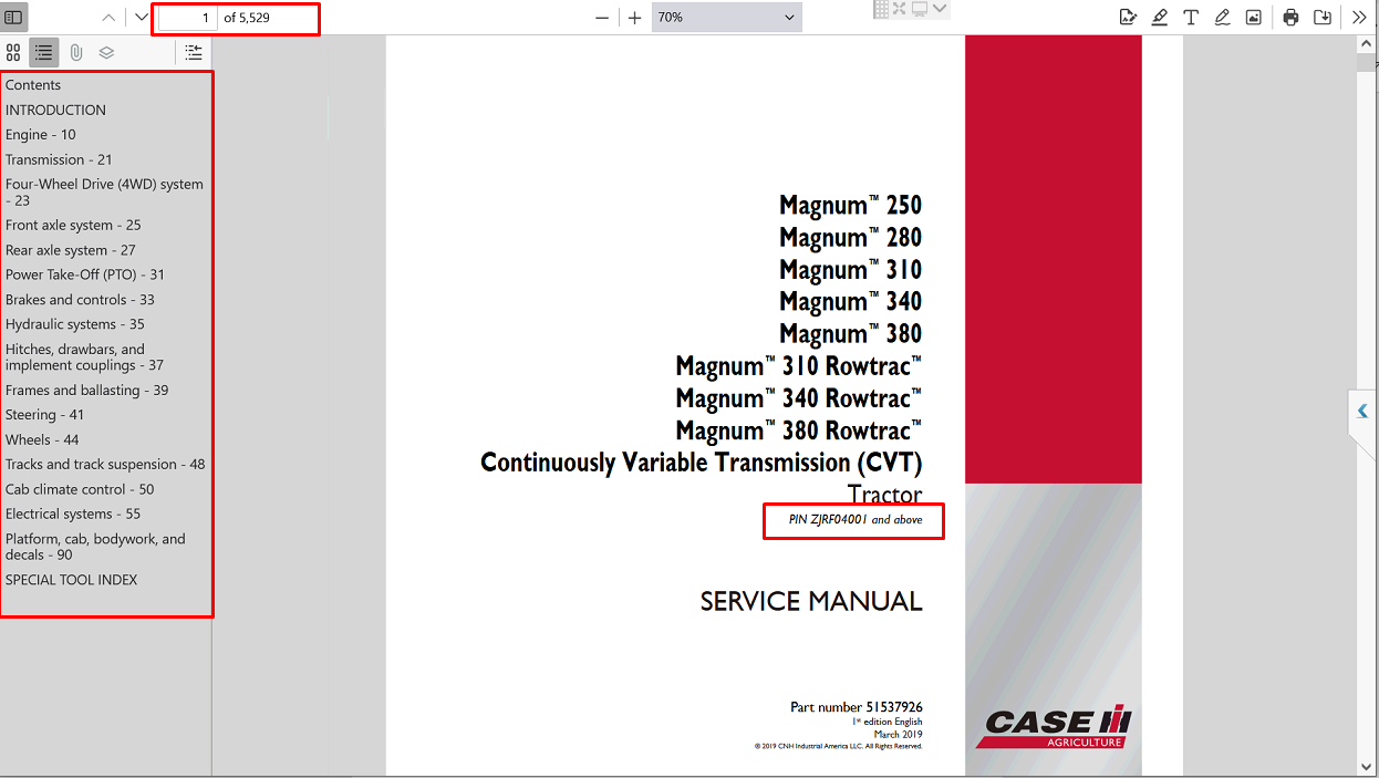 | Package include | Official Service Repair Manual for Case IH Magnum 380 CVT Tractor |