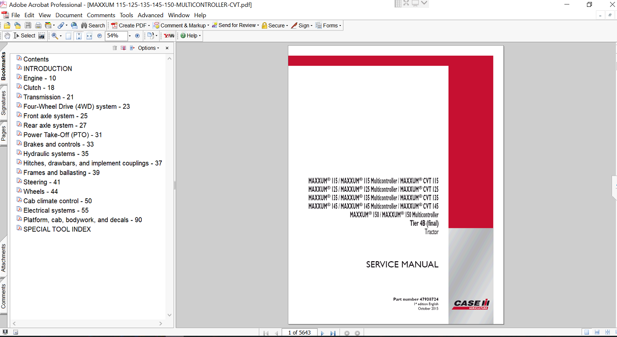 | Included Items | Complete Service Repair Manual for Case IH Maxxum 115 Multicontroller Tractor |