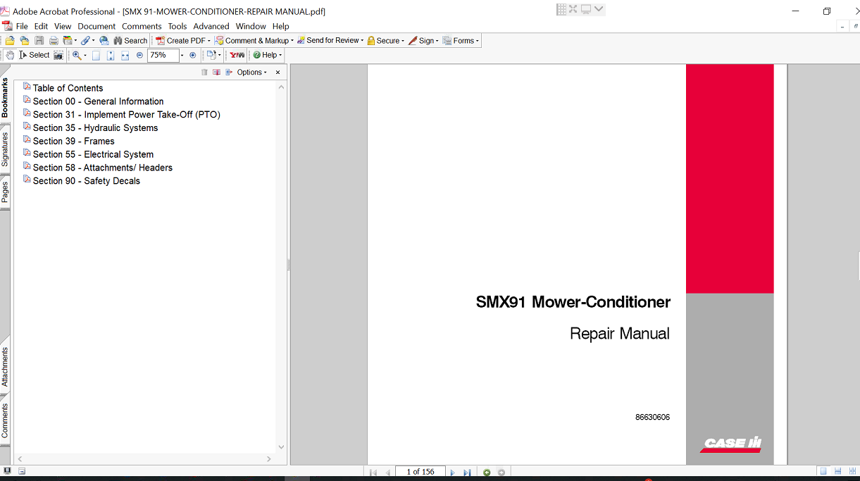 | Included Items | Service Repair Manual for Case SMX91 Mower-Conditioner |