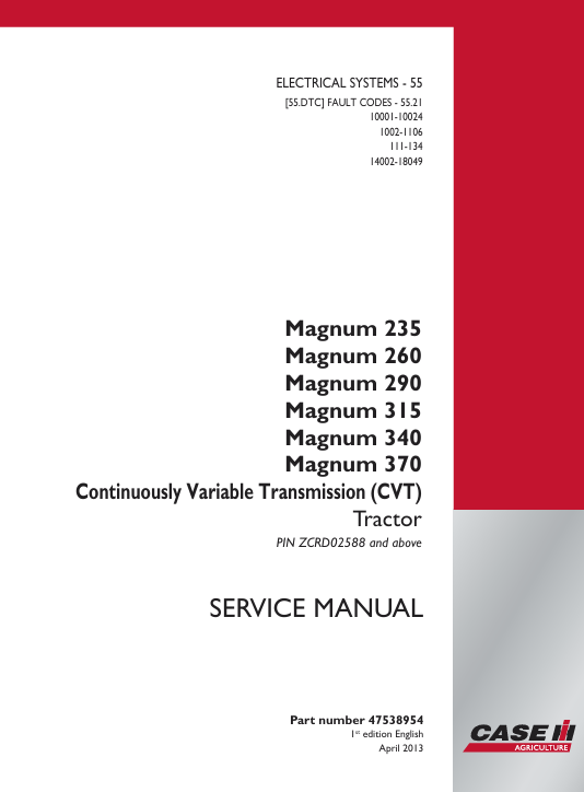 The Case Magnum 340 Tractor Electrical Systems Fault Codes Explanation is an essential resource for any operator or technician looking to maintain optimal performance and troubleshoot issues effectively. This comprehensive guide provides detailed insights into the various fault codes associated with the Magnum 340’s electrical systems, enabling users to quickly identify and address potential problems. With clear explanations and practical solutions, this manual empowers users to enhance their understanding of the tractor’s electrical components, ensuring efficient operation and minimizing downtime. Whether you’re a seasoned professional or a new operator, this guide is an invaluable tool for maintaining the reliability and longevity of your Case Magnum 340 Tractor