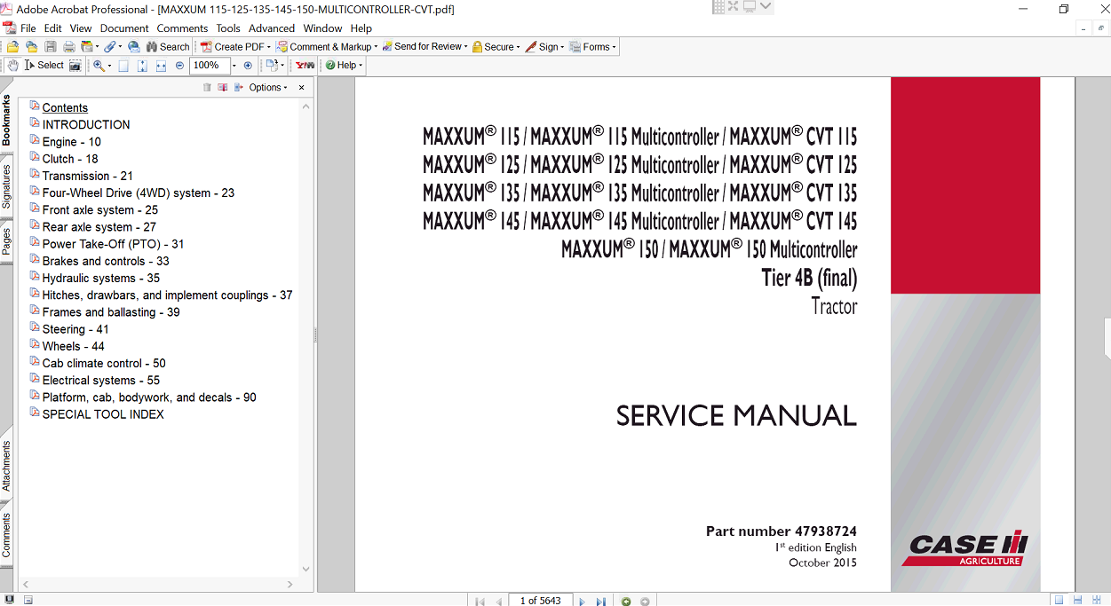 Included Items Complete Service Repair Manual for Case IH Maxxum 145 Tractor
