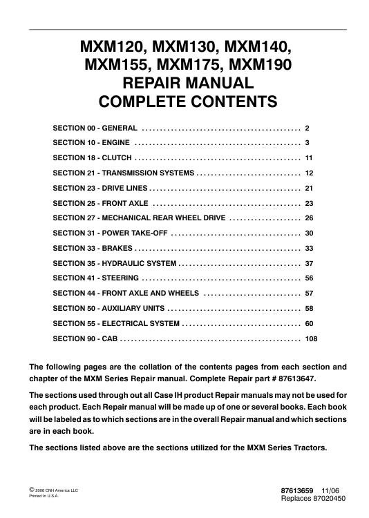 | Included Items | Complete Service Repair Manual for Case MXM 175 Tractor |
