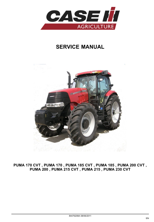 The Service Repair Manual for the Case Puma 155 Tractor is an essential resource for any owner or technician looking to maintain and repair this powerful machine. This comprehensive guide provides detailed instructions, diagrams, and troubleshooting tips, ensuring you can efficiently address any issues that arise. With its user-friendly format, you can easily navigate through complex repairs, saving time and reducing downtime on your farm. Invest in this manual to enhance your tractor’s performance and longevity