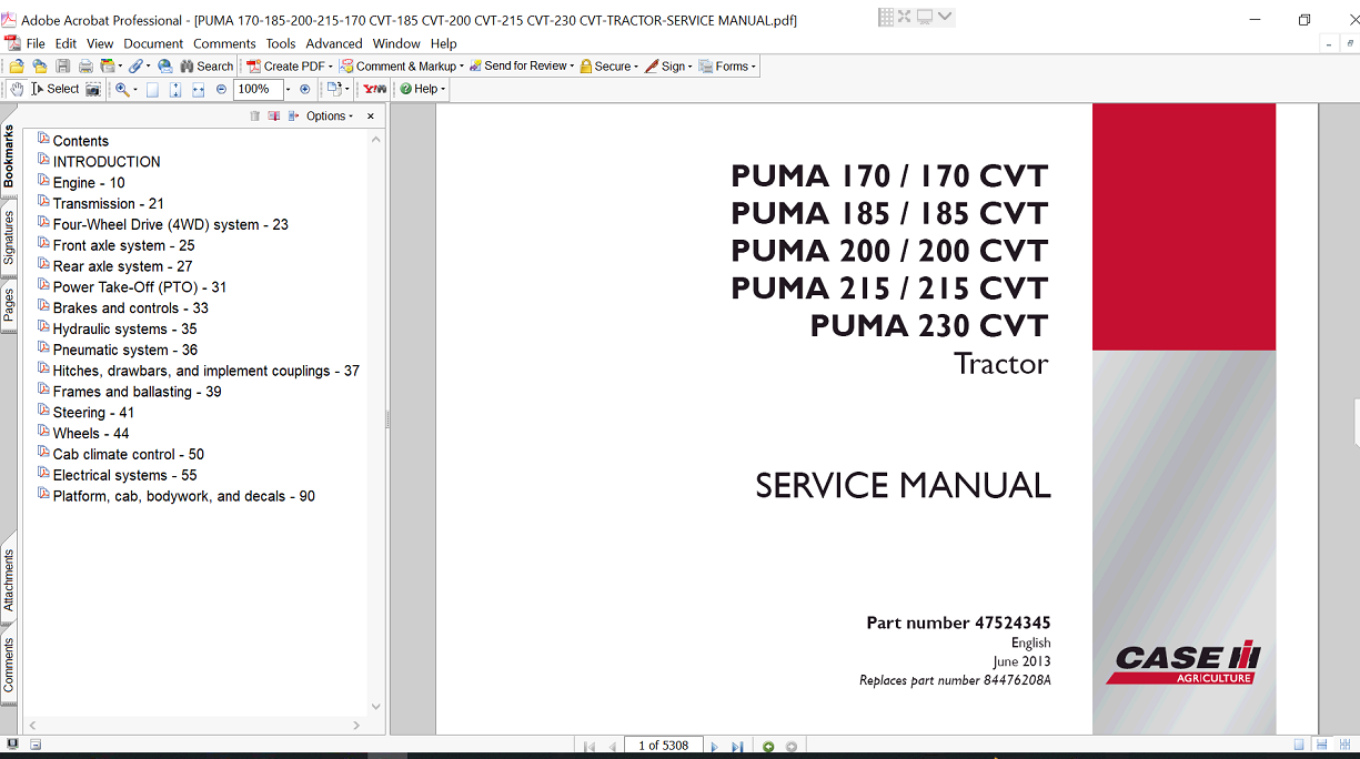 The Service Repair Manual for the Case IH Puma 200 CVT Tractor is an essential resource for any owner or technician looking to maintain and repair this powerful machine. This comprehensive guide provides detailed instructions, diagrams, and troubleshooting tips, ensuring you can efficiently address any issues that arise. With its user-friendly format, you’ll save time and money by performing repairs yourself, keeping your tractor in peak condition for optimal performance on the field. Invest in this manual to enhance your knowledge