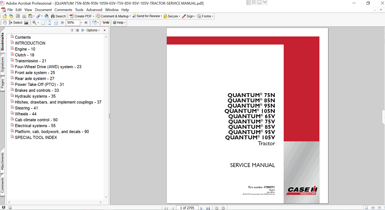 The Service Repair Manual for the Case Quantum 95V Tractor is an essential resource for any owner or technician looking to maintain and repair this powerful machine. This comprehensive guide provides detailed instructions, diagrams, and troubleshooting tips, ensuring you can efficiently address any issues that arise. With its user-friendly format, this manual empowers you to perform repairs with confidence, saving you time and money while keeping your tractor in peak condition