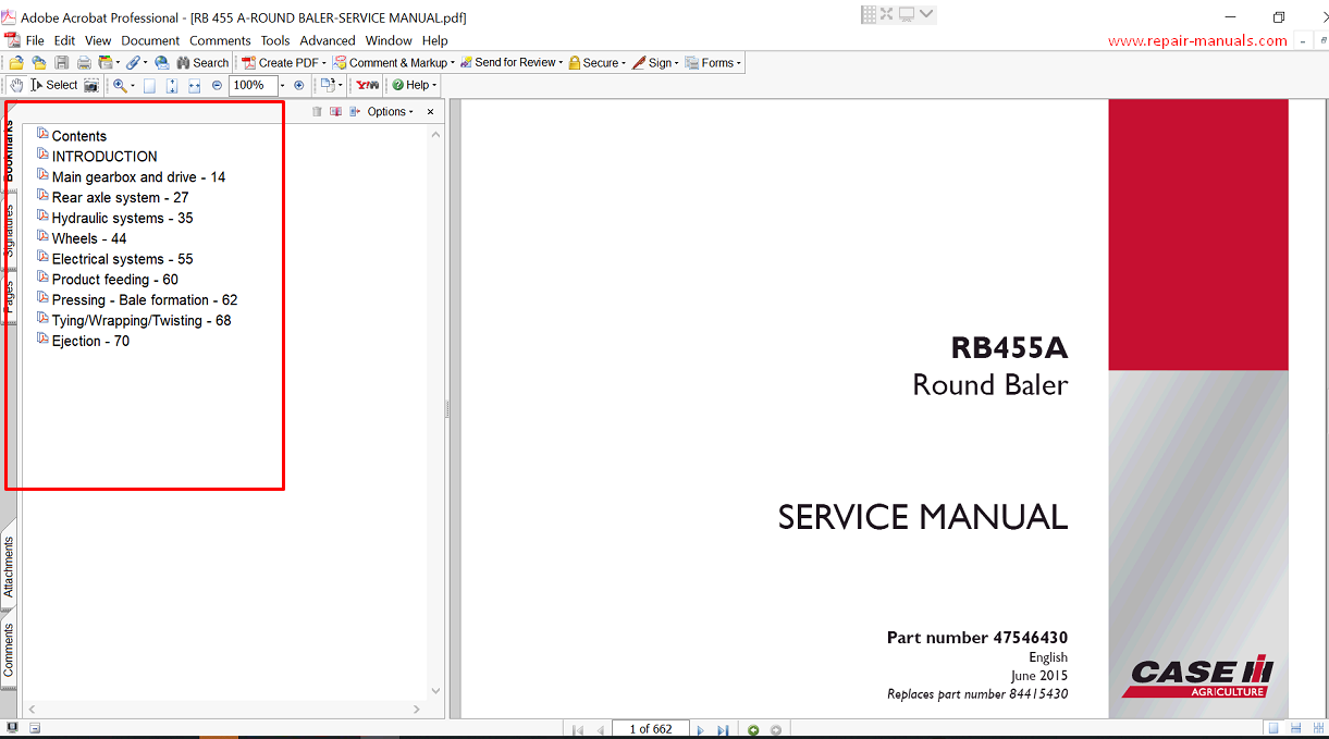 | Included Items | Complete Service Repair Manual for Case RB455A Round Baler |