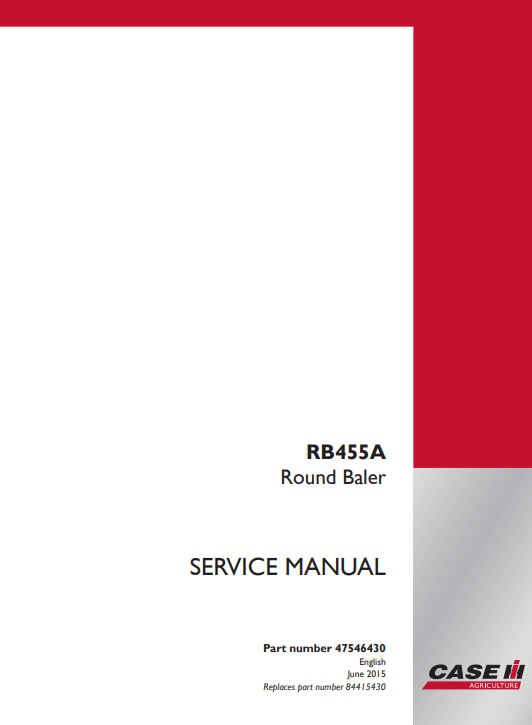 The Case RB455A Round Baler Service Repair Manual is an essential resource for maintaining and repairing your baler efficiently. This comprehensive guide provides detailed instructions, diagrams, and troubleshooting tips to ensure optimal performance and longevity of your equipment. With clear, step-by-step procedures, you can confidently tackle repairs and maintenance tasks, saving time and reducing downtime. Invest in this manual to enhance your operational efficiency and keep your baler running smoothly for years to come