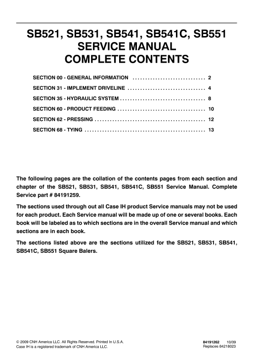 Case SB521, Case SB531, Case SB541C, Case SB551 Small Square Balers Service Repair Manual