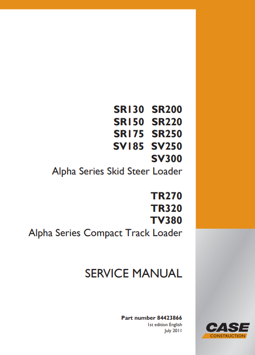 Case SR130, SR200, SR150, SR220, SR175, SR250, SV185, SV250, SV300, TR270, TR320, TV380 Skid Steer Service Repair Manual