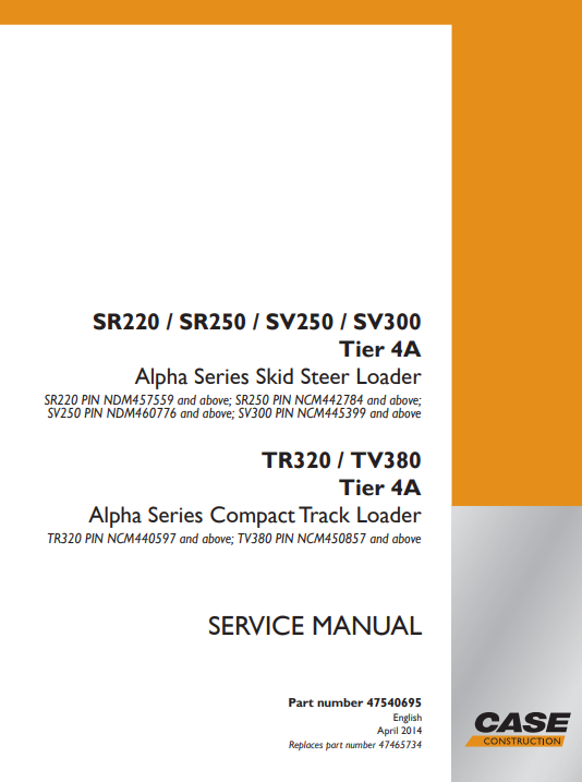 Case SR220, SR250, SV250, SV300 Skid Steer Loader Service Repair Manual